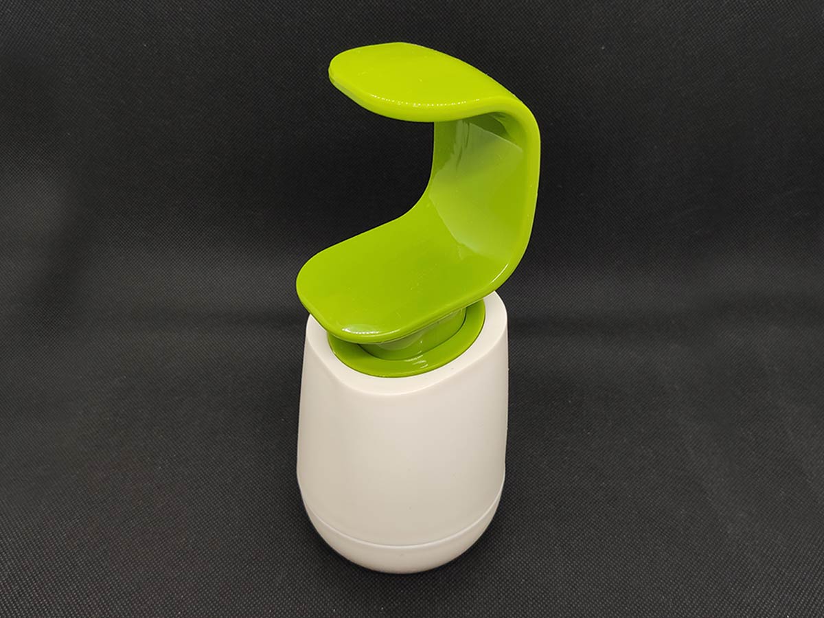 Dispensador de Jabón con diseño ergonómico en forma de C. Evite el contacto con bacterias al momento de tocar el dispensador.